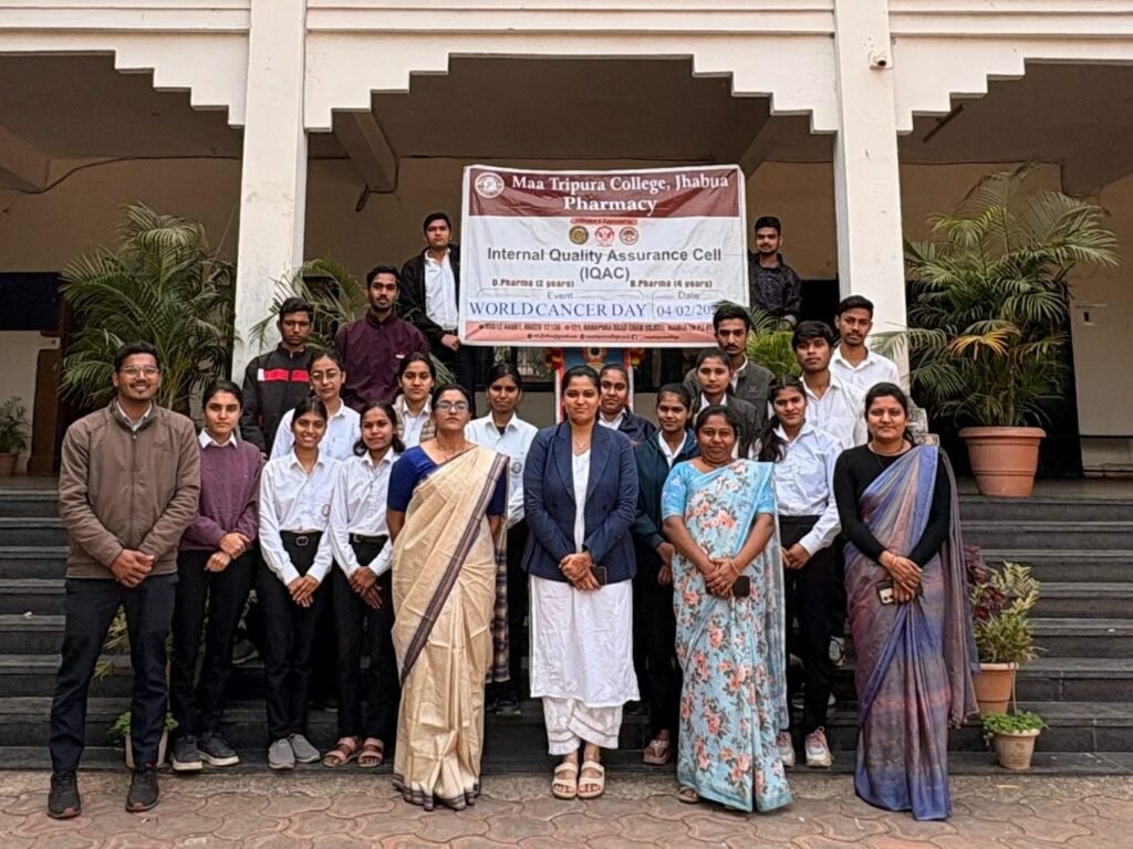 झाबुआ।माँ त्रिपुरा कॉलेज ऑफ फार्मेसी एवं नर्सिंग में विश्व कैंसर दिवस के अवसर पर एक विशेष कैंसर जागरूकता कार्यक्रम का आयोजन किया गया। कार्यक्रम की मुख्य अतिथि एवं वक्ता डॉ. खुशी शर्मा रहीं, जिन्होंने विद्यार्थियों को कैंसर से संबंधित महत्वपूर्ण एवं वैज्ञानिक जानकारियाँ प्रदान कीं।