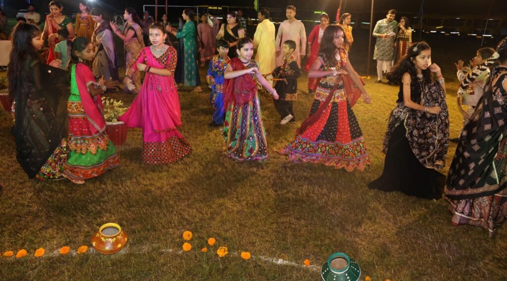 झाबुआ। इंदौर पब्लिक स्कूल , झाबुआ में मां दुर्गा के चरणों में नमन करने के लिए दिनांक 27 सितंबर , 2025 को रास गरबा का आयोजन किया गया , जिसका उद्देश्य अपने छात्रों को अपनी संस्कृति से जोड़े रखना तथा विद्यार्थियों और अभिभावकों का भारतीय संस्कृति से संबंधित त्योहारों को एक साथ मनाना है। रास गरबा में विद्यालय के कक्षा प्री. नर्सरी से बारहवीं तक के विद्यार्थियों , पूर्व छात्र-छात्राओं , अभिभावकों , शिक्षकों तथा समस्त स्टाफ द्वारा सहभागिता की गई।